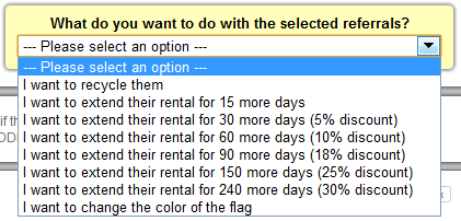 I want to extend their rental for ... more days: a különböző hosszúságtól függően (amivel kedvezmények is együtt járnak, lásd discount) itt hosszabbíthatjuk meg Őket
